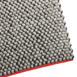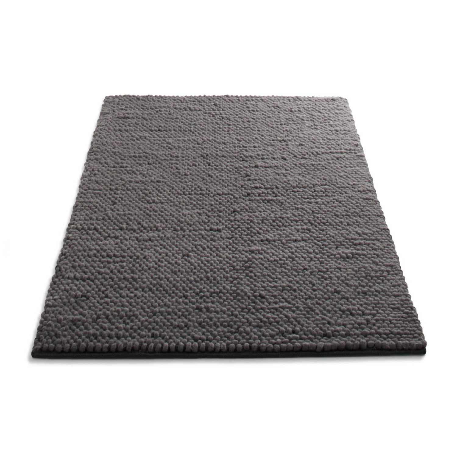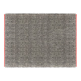 A thick weave of dark and neutral wool craft an inviting and nubby landscape. On the natural, select bright red or lavender trim to add a kick.