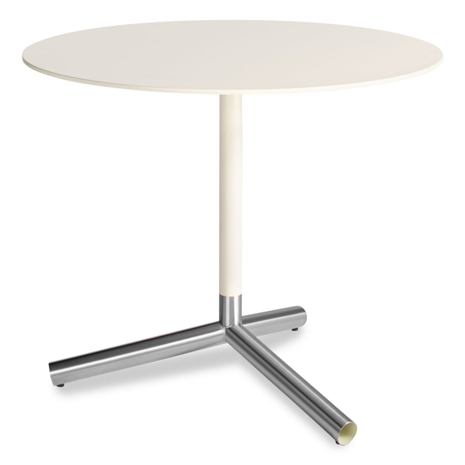 Pure color and brushed stainless steel play well together. Complete with a satin finish top and matching stem. Color peeks through the legs for a flirtatious touch.