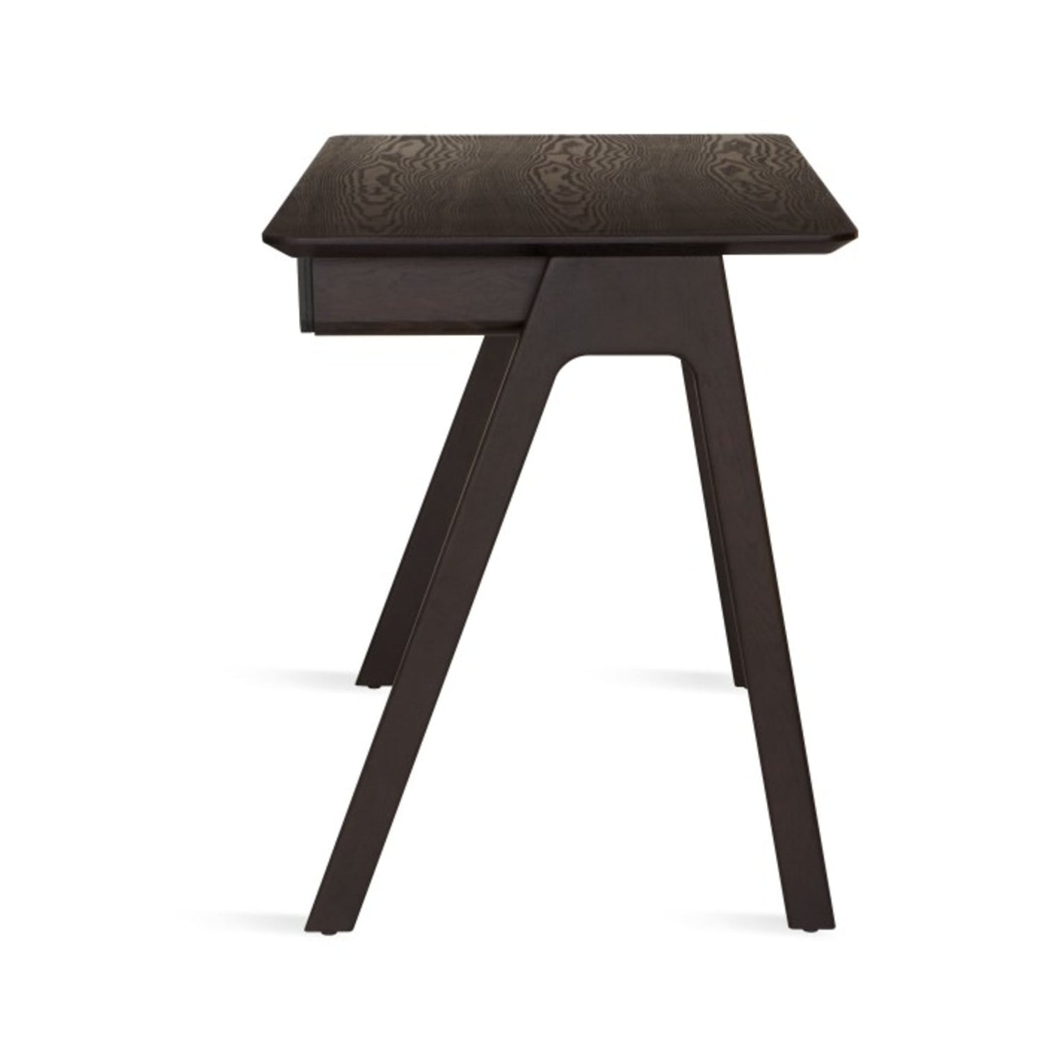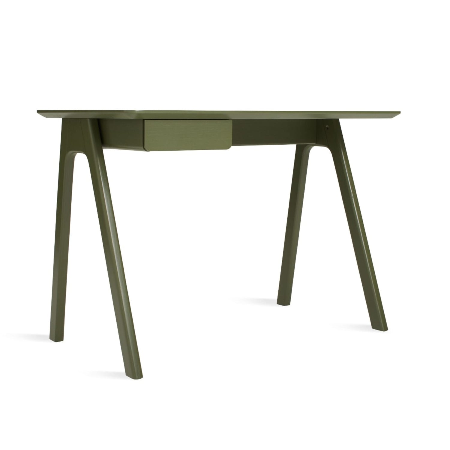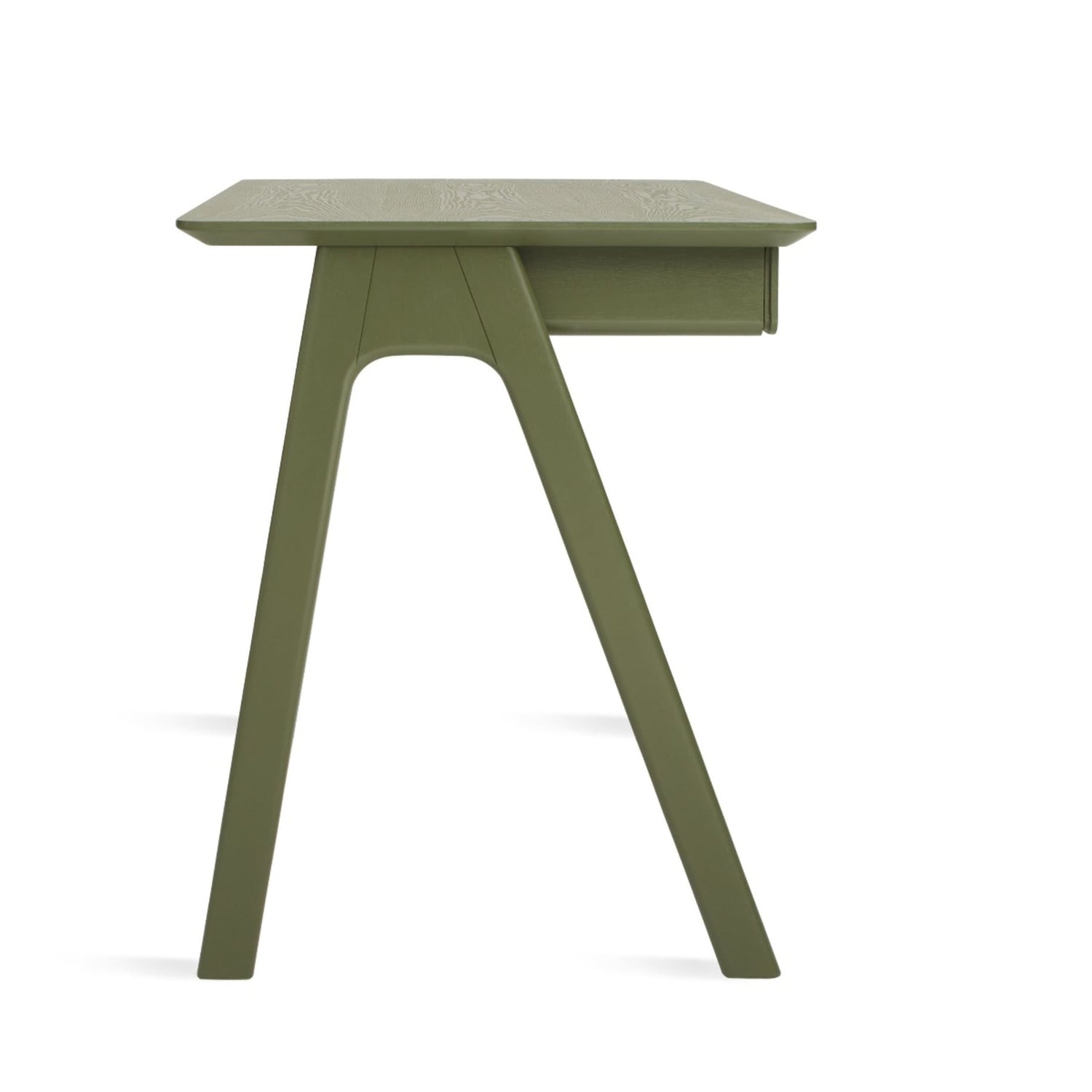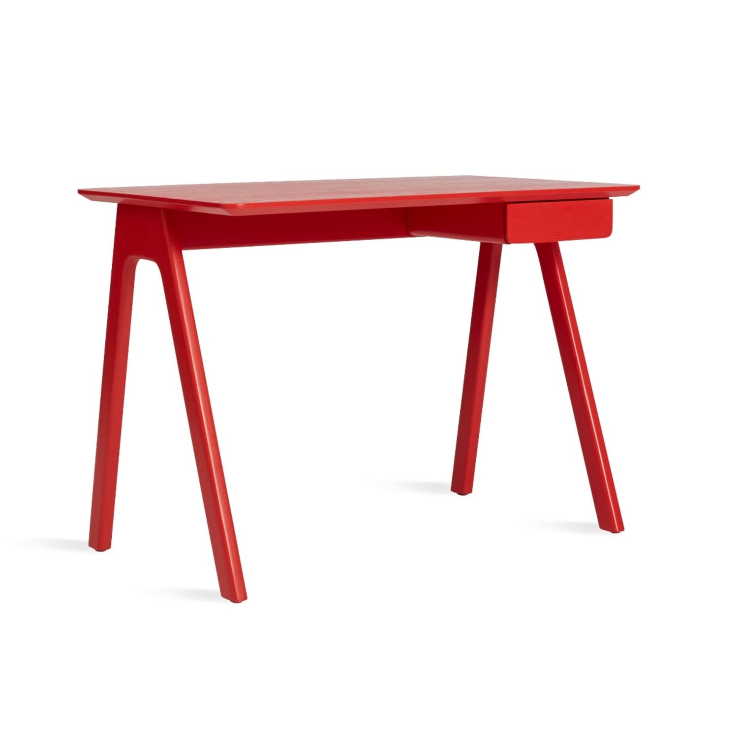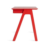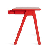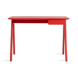 Radius edges and wood couple in this elemental desk. Pencil drawer keeps it tidy and can be assembled to either the left or right side.