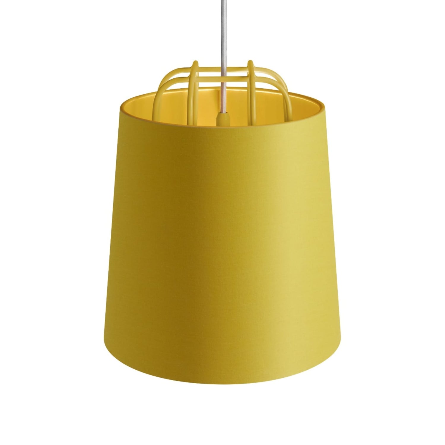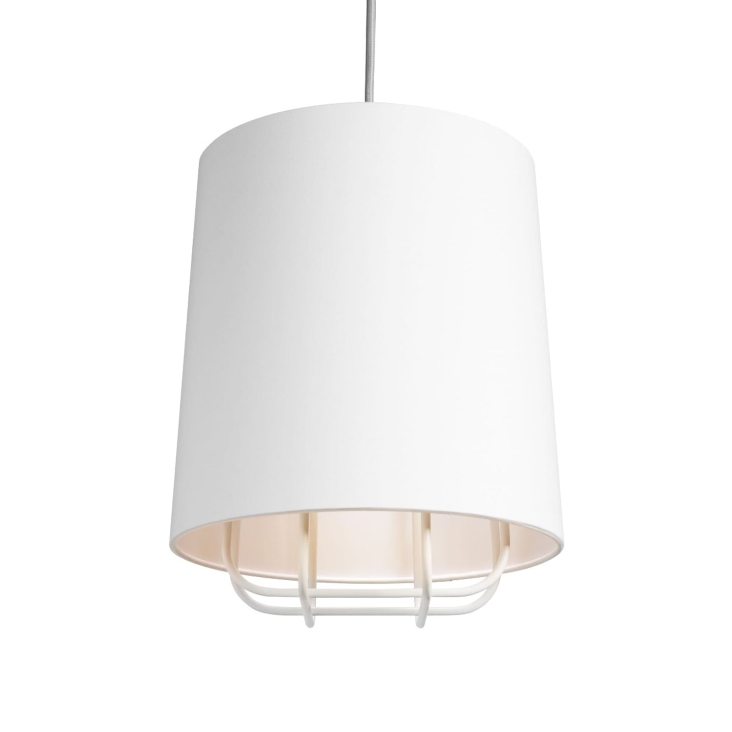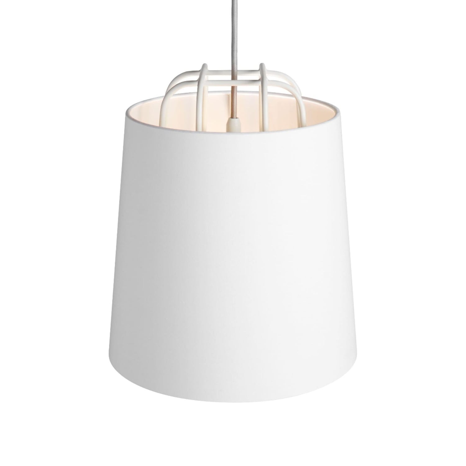 Svelte loops of powder-coated steel hold a cloth-covered shade. Available in a variety of colors to suit your space. Mounts to ceiling.