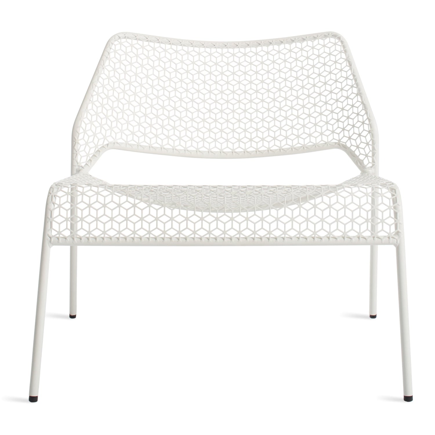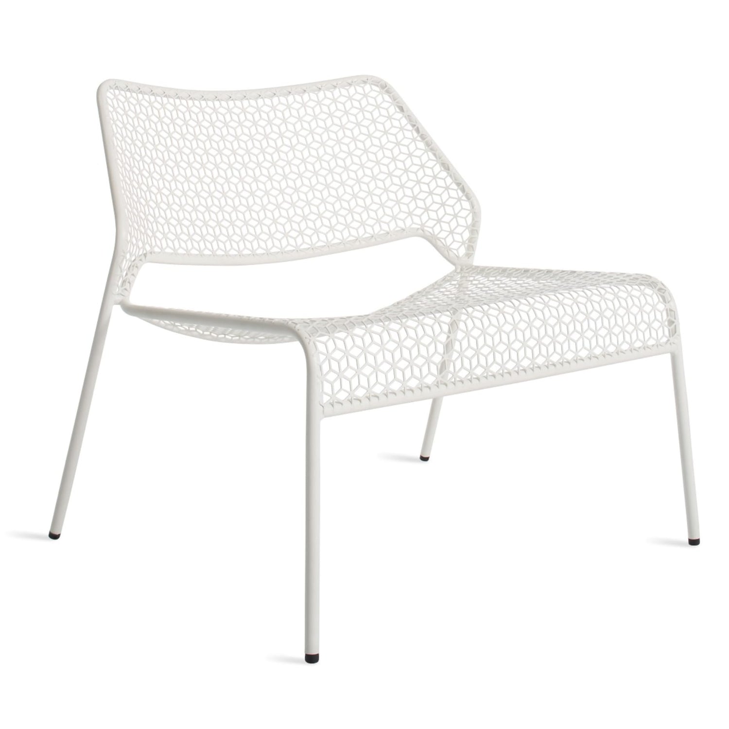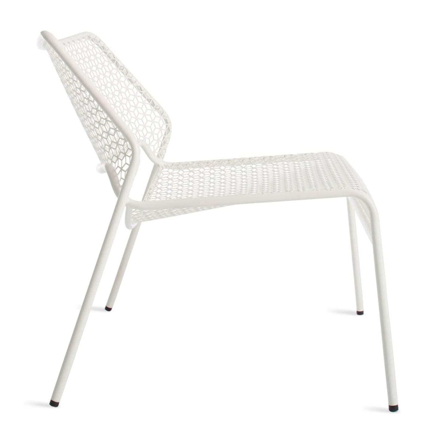 Inspired by hand-woven rattan, we created a bold graphic pattern in punched metal while a simple, stackable tubular frame maintains the clarity of form.